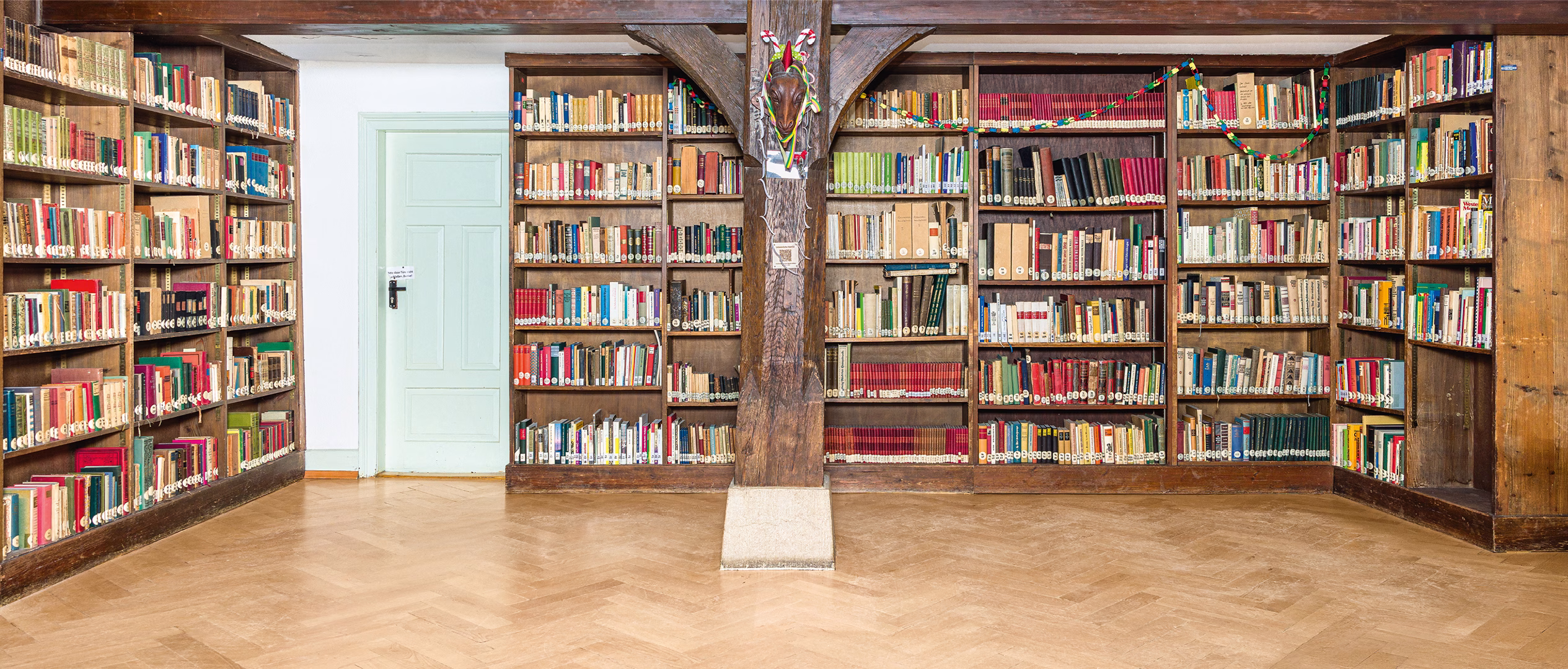Der Seminarraum des Ludwig-Uhland-Instituts für Empirische Kulturwissenschaft ist von seiner dunklen Holzeinrichtung geprägt. Tritt man ein, dann fällt neben dem Tisch und den Stühlen in der Mitte ein vollgestelltes Bücherregal, einem Wandregal gleich, auf der rechten Seite auf. Die Bücher passen zur sonstigen Einrichtung: Sie sehen alt und benutzt aus. Mehr Interesse wecken sie bei Lehrenden und Studierenden aber nicht.